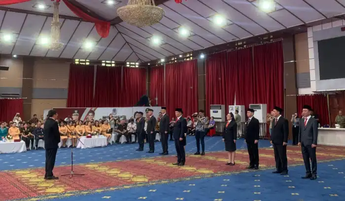 Manado, Portalsulutnew.com – Pemerintah Kota (Pemkot) Manado kembali melakukan langkah penyegaran dalam struktur birokrasi. Wali Kota Andrei Angouw bersama Wakil Wali Kota dr. Richard Sualang AA-RS) resmi melantik dan mengambil sumpah sejumlah pejabat, Kamis (4/9/2025), di Ruang Serbaguna Kantor Wali Kota Manado.