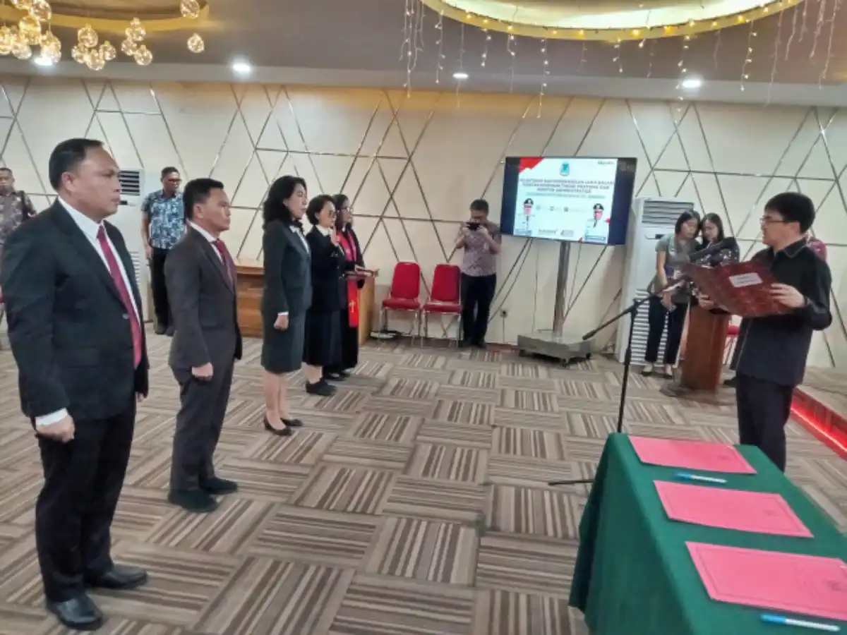 Pelantikan yang turut dihadiri Kaban BKPSDM Otniel Tewal, unsur Inspektorat, para kepala SKPD hingga pejabat eselon, menjadi momentum evaluasi kinerja sekaligus penyegaran struktur.