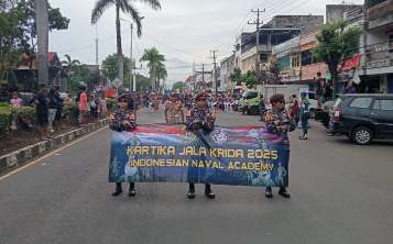 Salah satu momen yang menyedot perhatian ribuan warga adalah penampilan Drum Band Taruna Taruni Akademi Angkatan Laut, yang menambah semarak suasana kirab.
