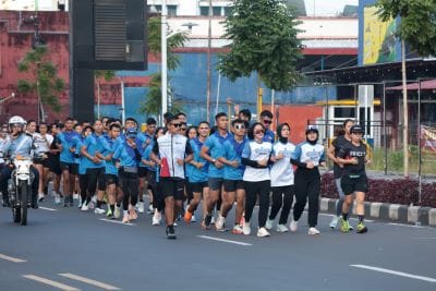 Semangat peserta begitu antusias mengikuti rute lari yang telah disiapkan panitia. Mereka juga memperhatikan faktor keamanan dan kesehatan.