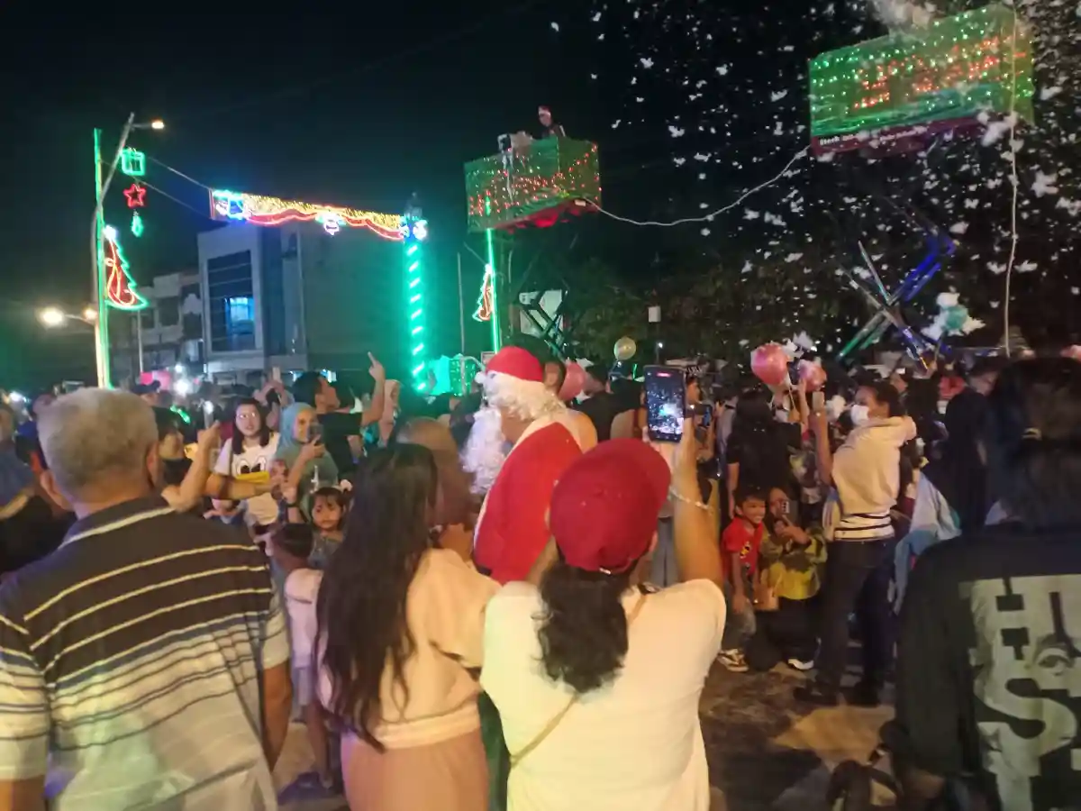 MANADO | Portalsulutnew.com – Suasana Boulevard Manado mendadak berubah bak negeri musim dingin, Sabtu (20/12/2025) malam. Guyuran salju menyelimuti kawasan Pasir Putih, diiringi kemunculan Santa Claus yang menyapa warga satu per satu, menciptakan magnet hiburan jelang Natal 2025 dan Tahun Baru 2026.