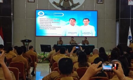 Portalsulutnew.com – Gubernur Sulawesi Utara (Sulut) Mayjen TNI Purn Yulius Selvanus.SE, melalui Wakil Gubernur (Wagub) Dr Victor J Mailangkay.SH.MH, secara resmi buka Rapat Pemantauan dan Evaluasi Pengadaan Barang dan Jasa (Barjas) di Lingkup Pemerintah Provinsi (Pemprov) Sulut, di Ruang Mapalus Kantor Gubernur, Kota Manado, Senin (14/04/2025).